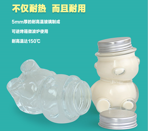 徐州穩(wěn)健玻璃制品有限公司生產(chǎn)的這款可愛小熊玻璃瓶帶蓋,可以成裝糖果和果凍以及奶酪,款式相當?shù)钠撩烙^,,現(xiàn)在先把它的主要功能給在坐的廣大客戶介紹一下,這款玻璃瓶主要特點有小巧玲瓏,便于攜帶,簡潔衛(wèi)生,利于健康,密封性能好,利于實物長期儲存,有兩面得 瓶底設(shè)計,可正著放也可斜著放,總之好處多多,是一款不錯的工藝玻璃制品,全國統(tǒng)一銷售熱線:0516-89862888,需要的朋友可以直接聯(lián)系www.yirentouzi.com官方網(wǎng)站上的徐經(jīng)理。
